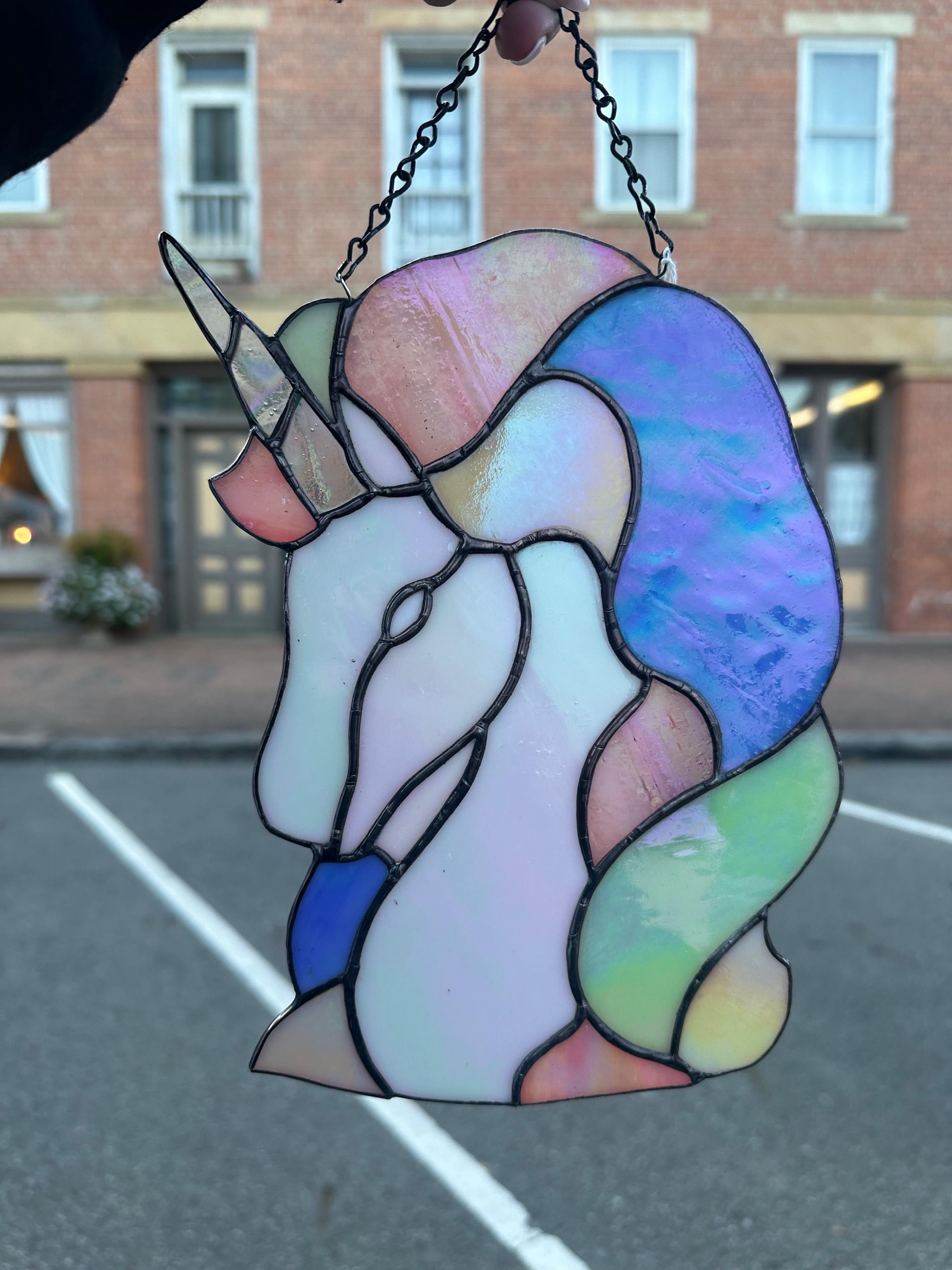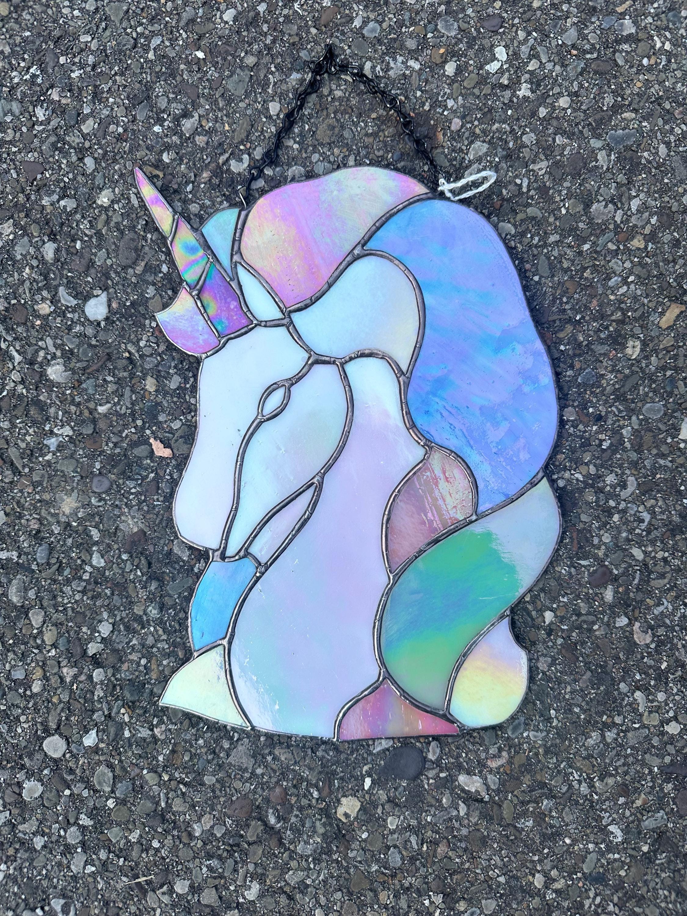 Iridescent Unicorn Stained Glass Sun Catcher in Pastel Tones. Handmade